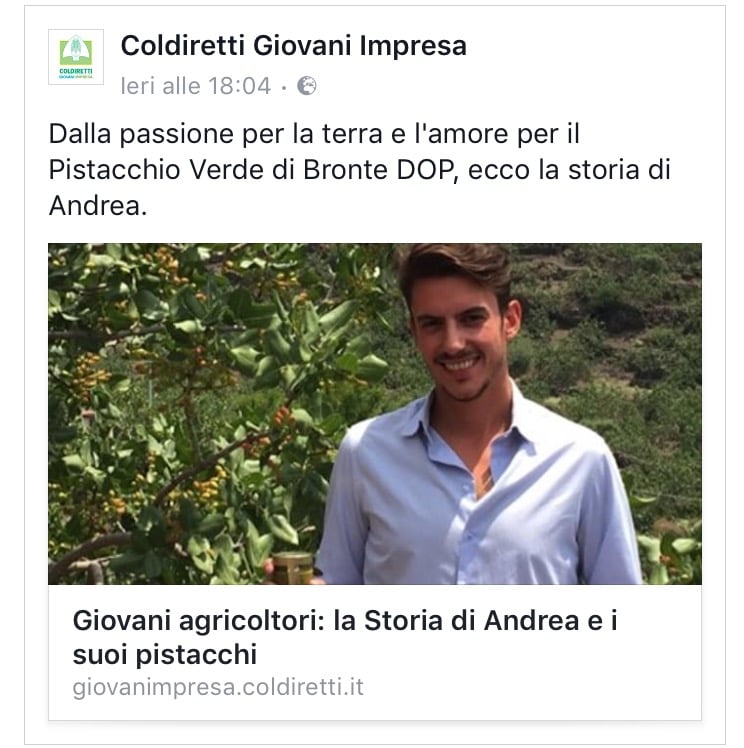 21. febbraio 2017 PARLANO DI NOI: Articolo a cura di "Coldiretti Giovani Impresa". Fonte: http://giovanimpresa.coldiretti.it/storie/sicilia/storia/giovani-agricoltori-la-storia-di-andrea-e-i-suoi-pistacchi/ Vai alla pagina Facebook tagPlaceholderTag: Scrivi commento Commenti: 0