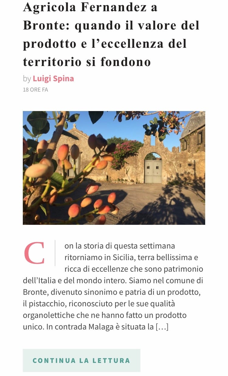29. novembre 2018 Parlano di noi su: www.altragamma.com Parlano di noi su: www.altragamma.com LEGGI L'ARTICOLO COMPLETO AL SEGUENTE LINK: https://www.altragamma.com/it/2018/11/28/agricola-fernandez-a-bronte-quando-il-valore-del-prodotto-e-leccellenza-del-territorio-si-fondono/ tagPlaceholderTag: